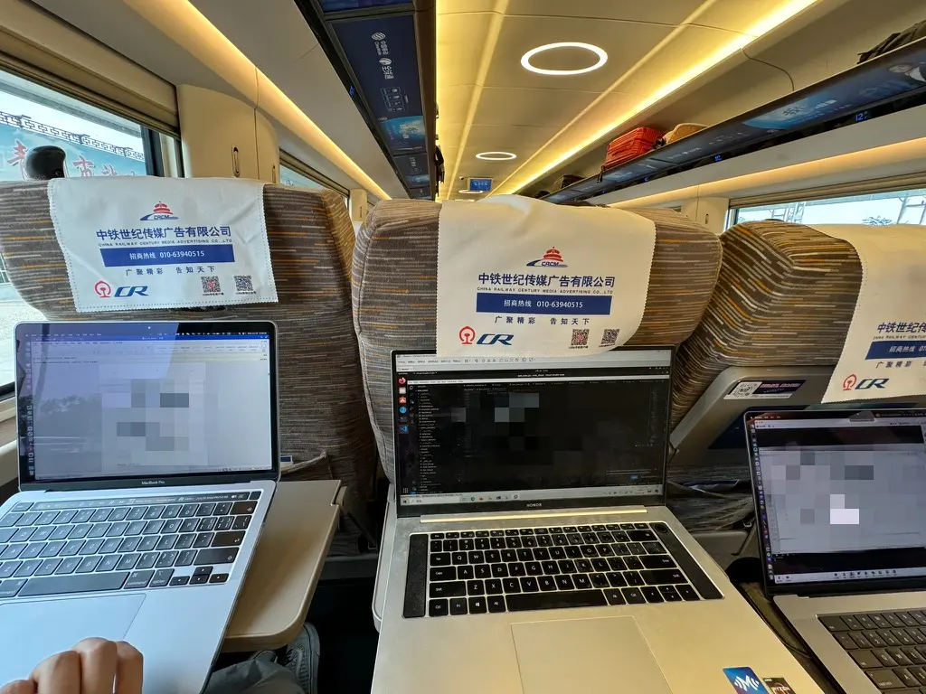 第二天紧接着坐高铁动身前往青岛,几个悲惨毕业生在高铁上还要写材料、改代码、开会
