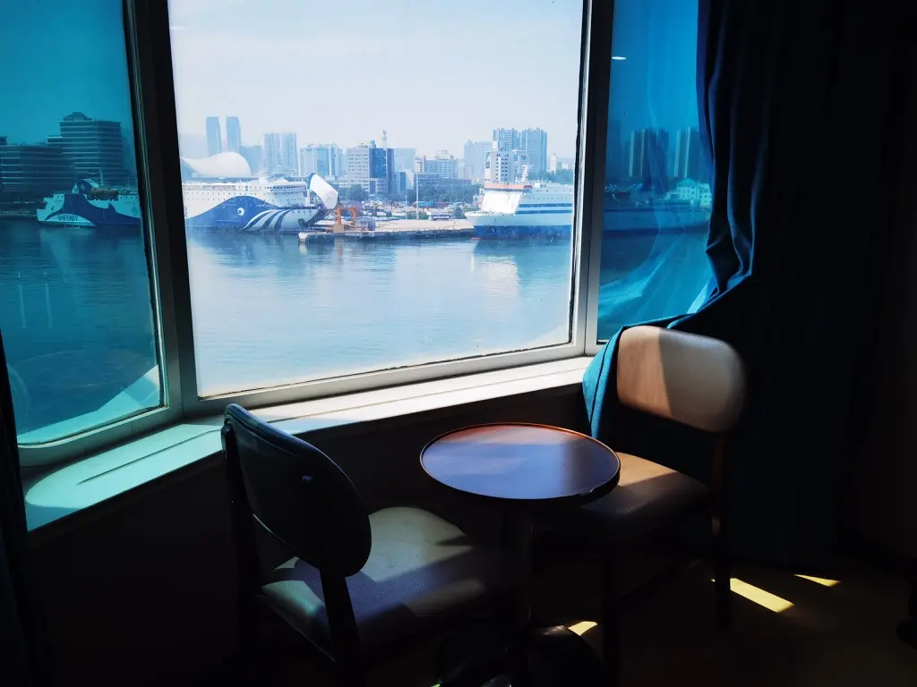 轮渡早上 9 点多从烟台出发,下午 5 点多才到达大连,感觉时间还挺久的,所以特地整了个标间,并没有选大厅的座位,准备在船上好好休息一下