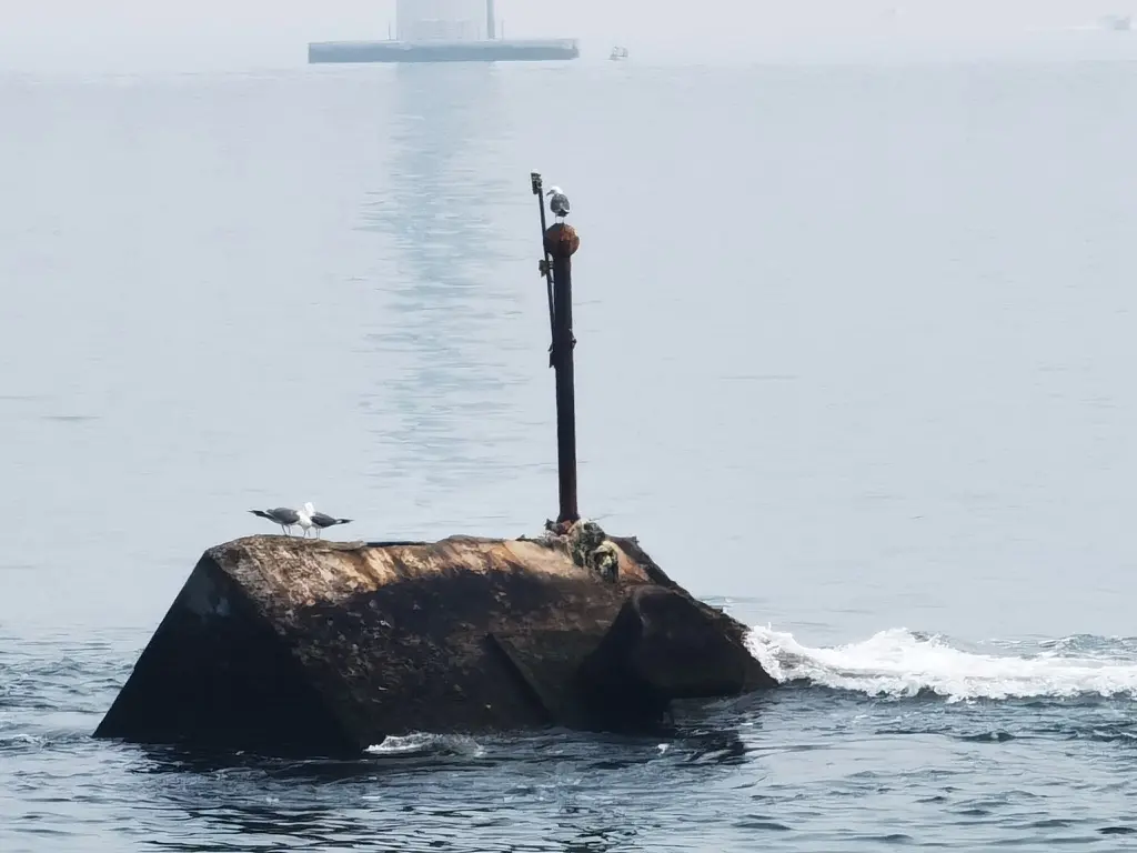 在船上的过程还是挺有意思的,开船没过多久,手机信号直接归零,彻底的与世隔绝了。在船上各层四处转悠了一下,感受到了船上非凡的物价(你这瓜皮子是金子做的还是瓜粒子是金子做的.jpg),俩人在露天的甲板上呆了很久。甲板上的风很大,水汽很重,船尾竟然还有海鸥一路跟着飞,感觉有点值回票价了