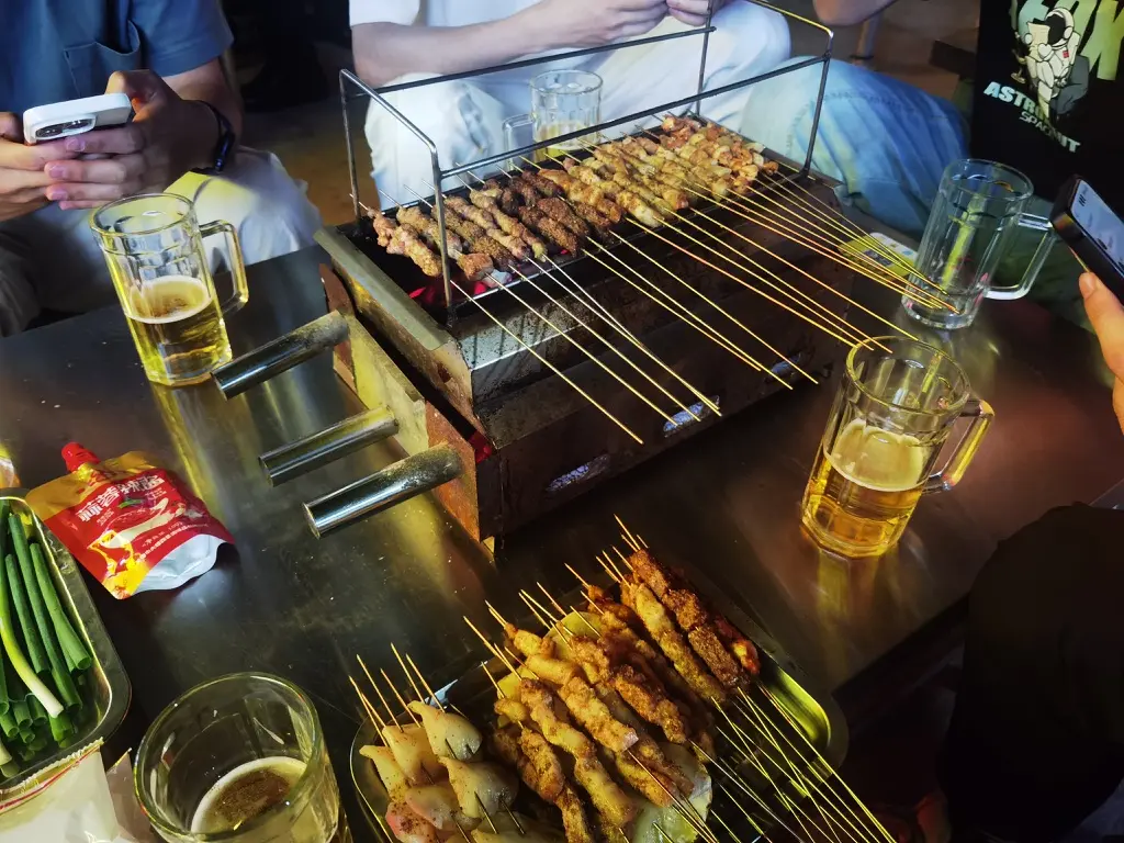 其实主要还是想狠狠撸串了感觉有被当地平价的烧烤爽到,面皮饼包着大葱和肉块,再来点秘制小酱汁和烤肉粉,一口下去,美美的饱餐一顿
