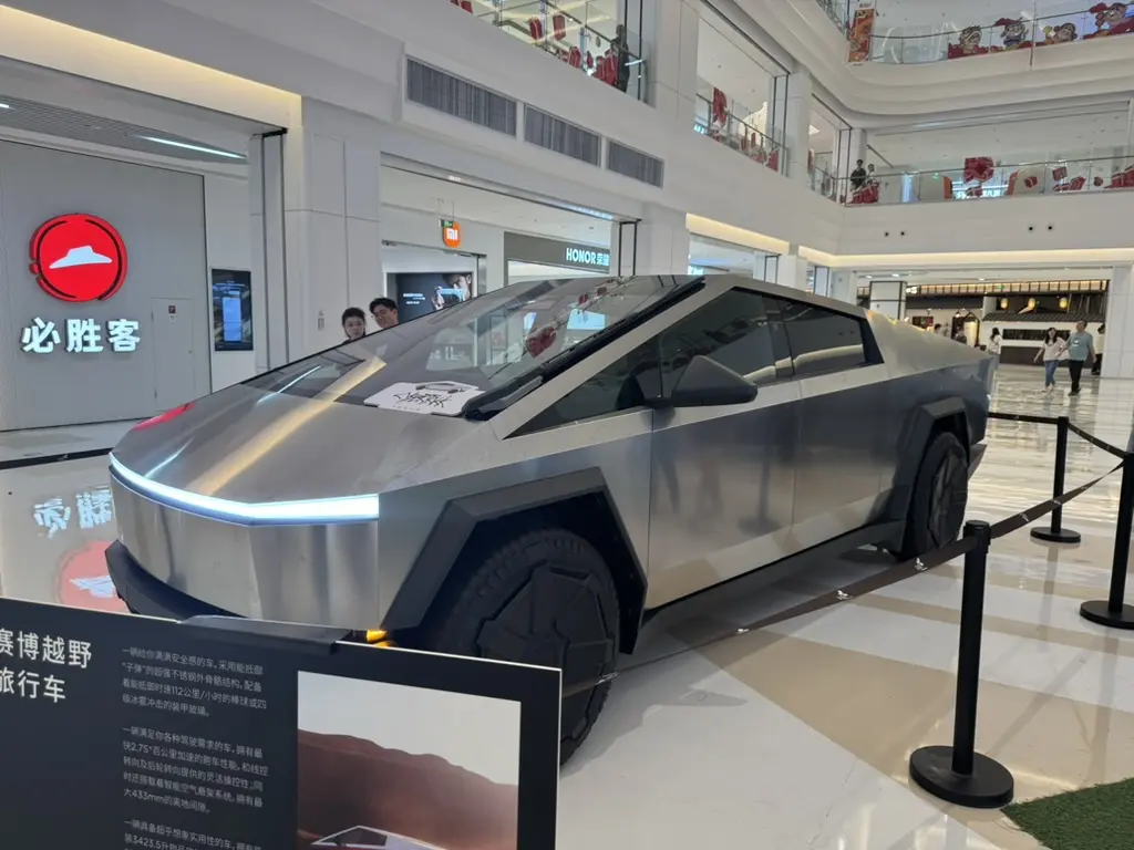 敲咪咪打开来看了一眼,大是真的大,然后也是第一次看到特斯拉的 Cybertruck 实车,确实是很立体很有未来感,不过皮卡在国内市场确实没有那么多受众吧